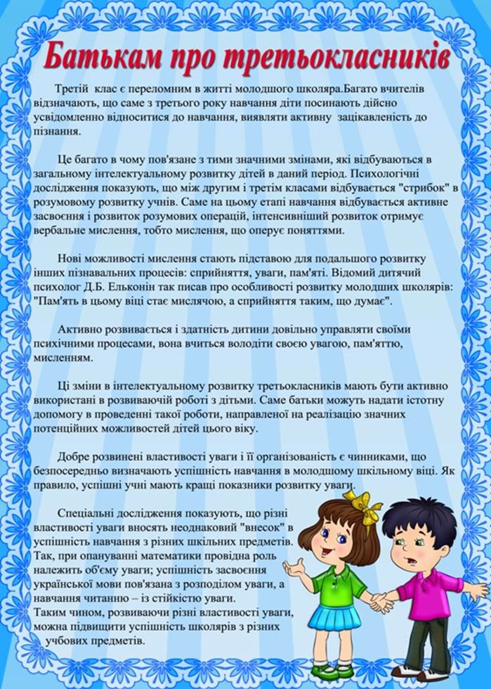 Рекомендації для батьків третьокласників